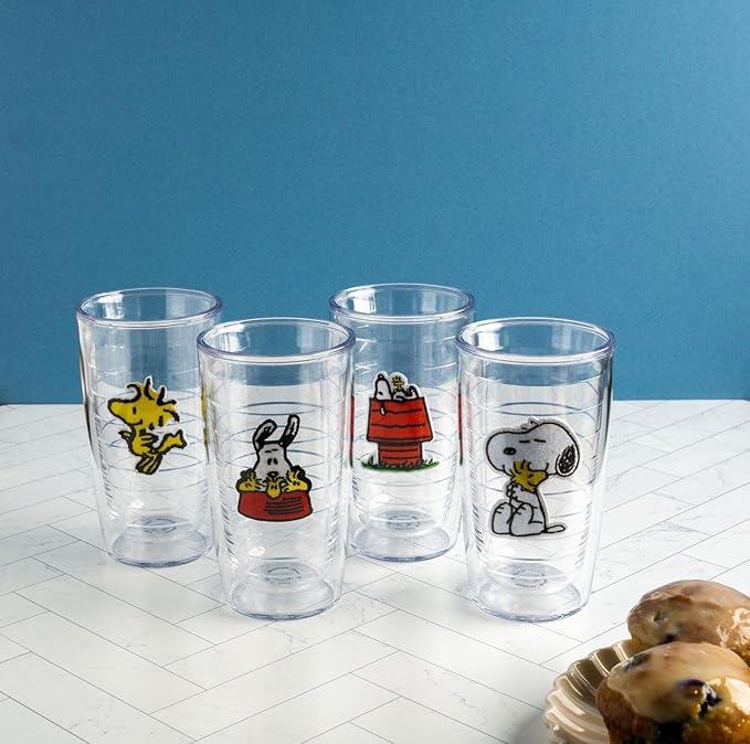 Tervis Peanuts Best Buddies Collection Snoopy Woodstock House Made in USA Double Walled Insulated Tumbler Travel Cup Keeps Drinks Cold & Hot, 16oz 4pk, Assorted