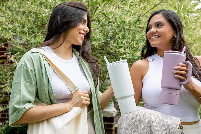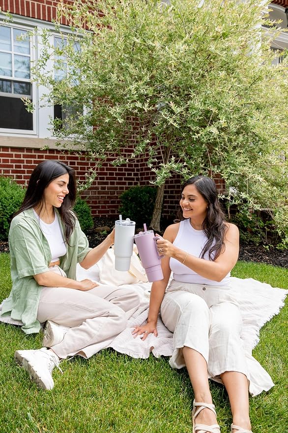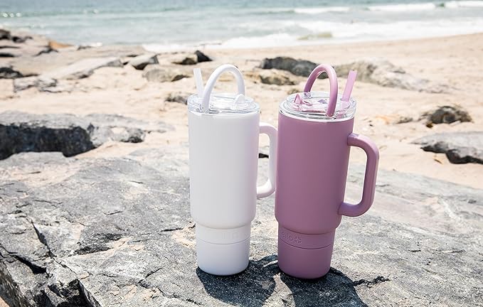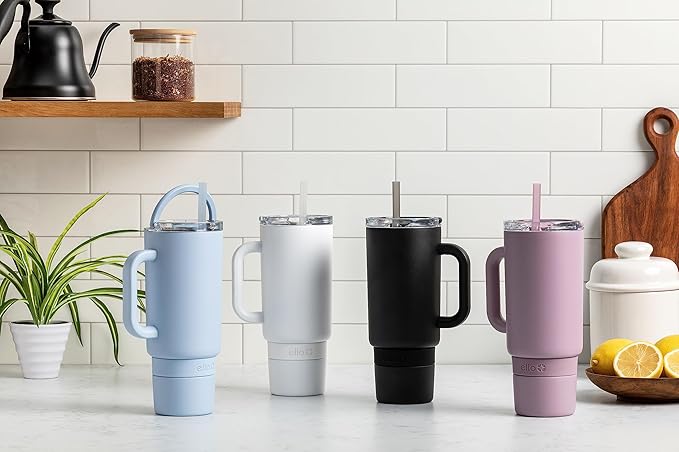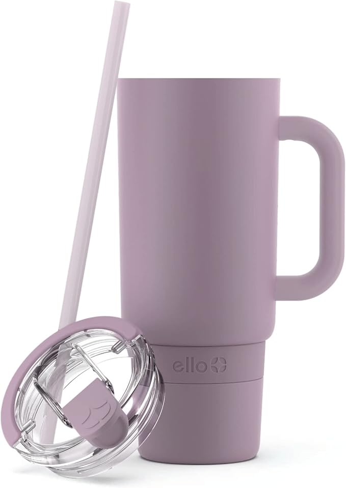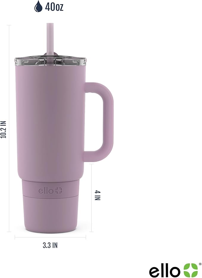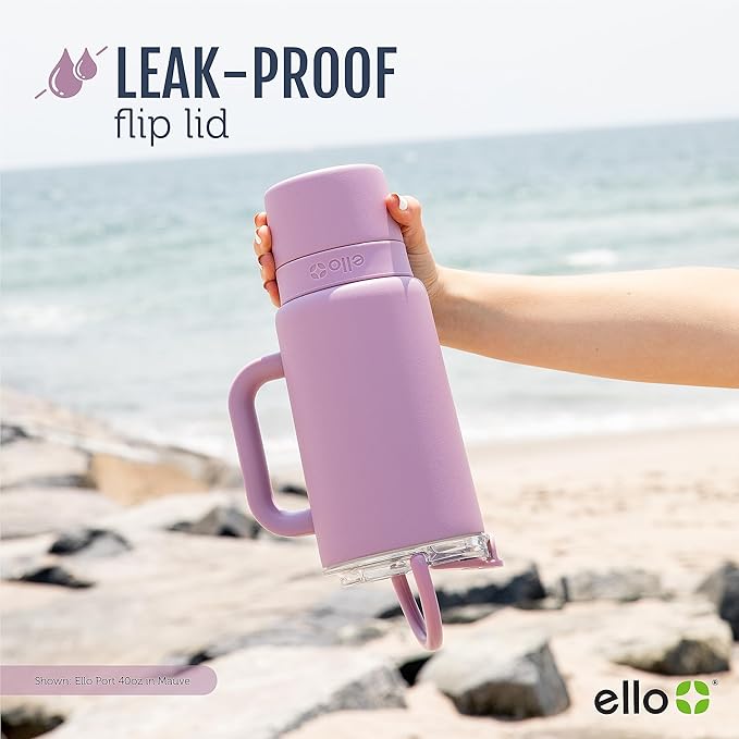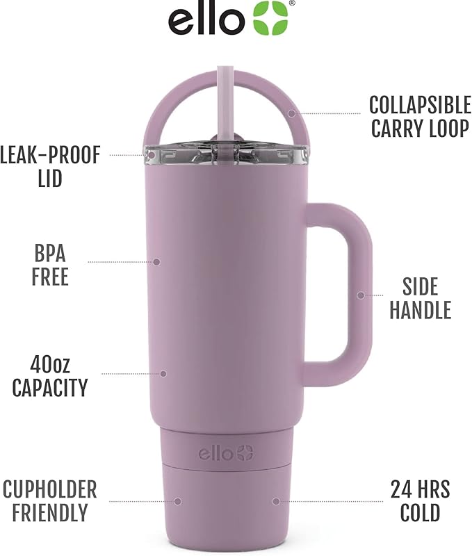 Ello Port 40oz Tumbler with Carry Loop & Integrated Handle, Vacuum Insulated Stainless Steel Reusable Water Bottle, Travel Mug with Leak Proof Lid and Straw, Perfect for Iced Coffee and Tea, Mauve