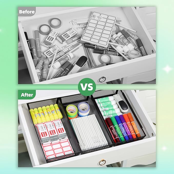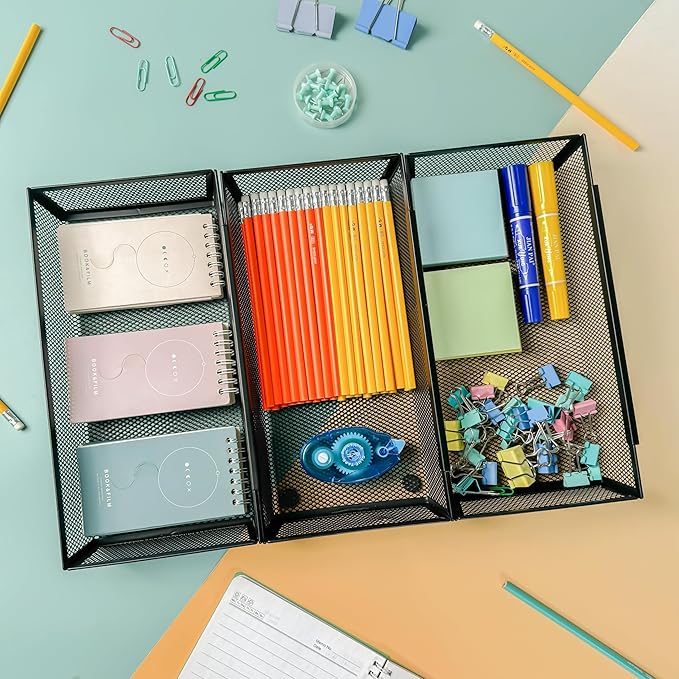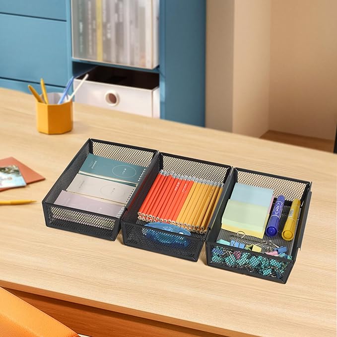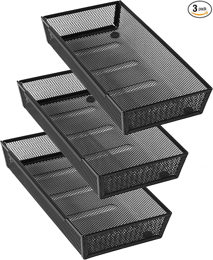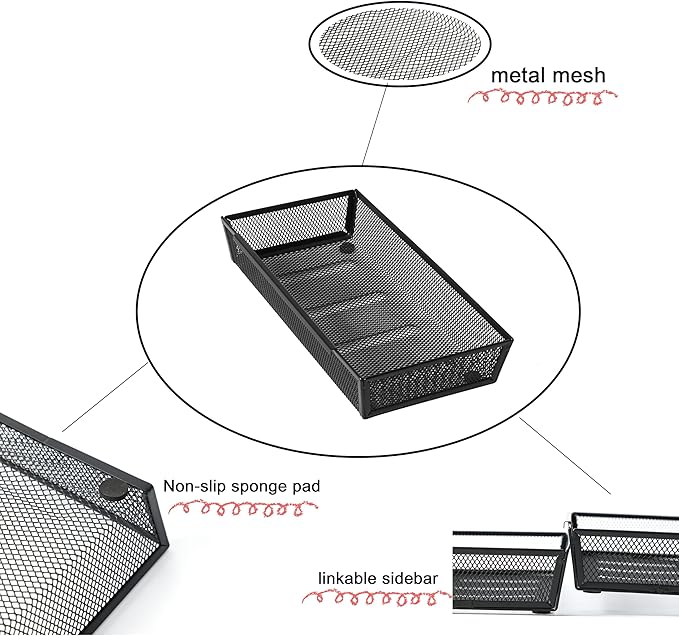 ihomecooker Mesh Tray Silverware Drawer Organizer, Utensil Cutlery Tray Office Supplies with Interlocking Arm Drawer Dividers Organizer for Flatware, Knives,Home,Office, School,Bedroom 12X6'' Black