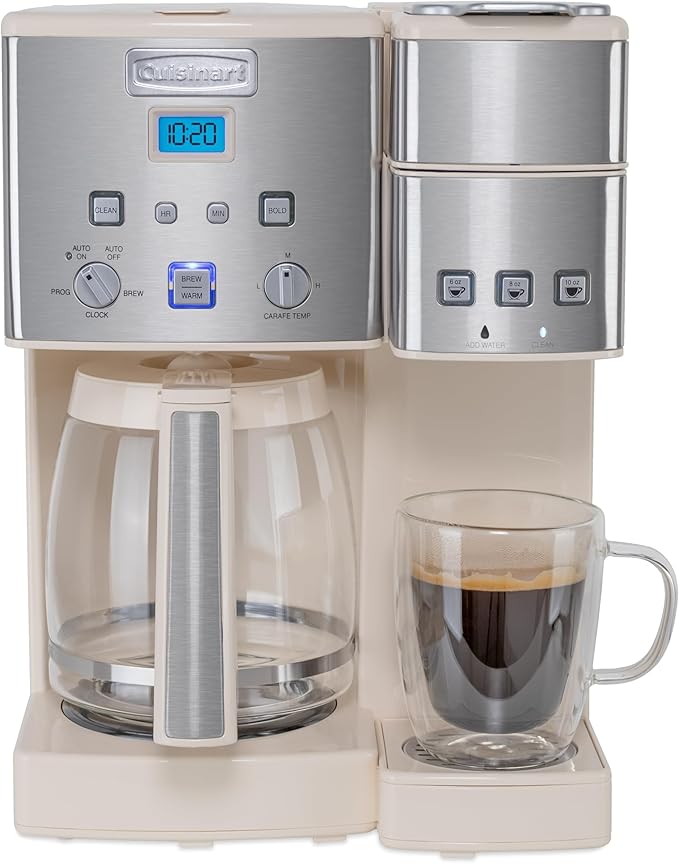 Cuisinart Single Serve + 12 Cup Coffee Maker, Offers 3-Sizes: 6-Ounces, 8-Ounces and 10-Ounces, Cream, SS-15P1CRM