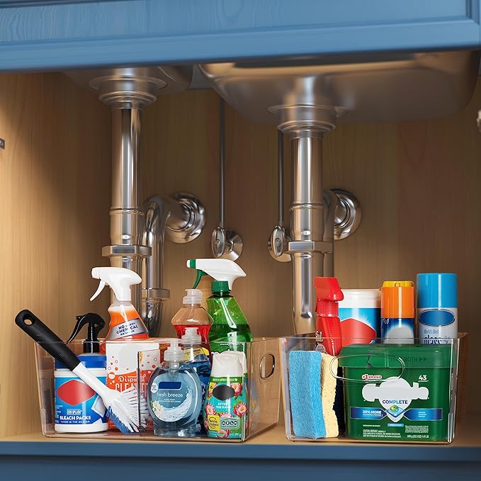 ClearSpace Plastic Storage Bins with Divider – Perfect Kitchen Organization or Pantry Storage – Fridge Organizer, Pantry Organization and Storage Bins, Cabinet Organizers