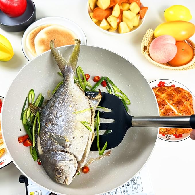 5Pcs Silicone Spatula Heat Resistant Long Large Spatulas Set for Nonstick Cookware, Rubber Pancake Fish Turner Spatula for Kitchen Use Silicone Cooking Kitchen Utensils Set Black