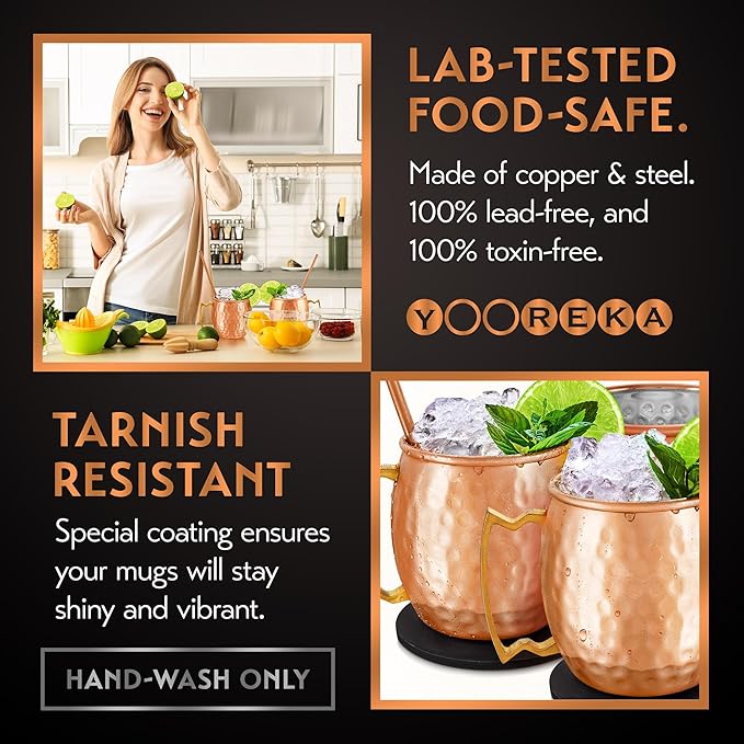 About This ✅ Complete Gift Set: Your antique copper mugs stainless steel set contains everything you need for a Moscow... Read more