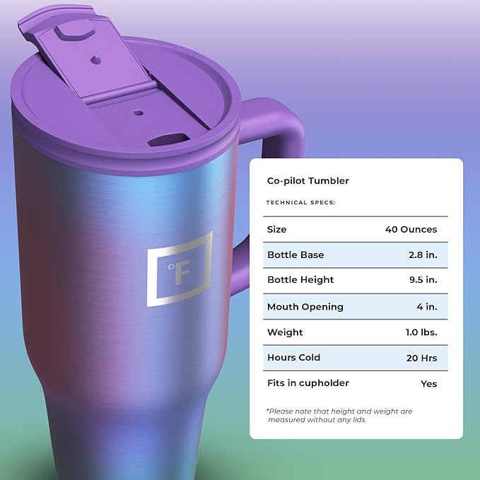 IRON °FLASK Co-Pilot Insulated Mug w/Straw & Flip Cap Lids - Cup Holder Bottle for Hot, Cold Drink - Leak-Proof - Water, Coffee Portable Travel Mug - Aurora, 40 Oz