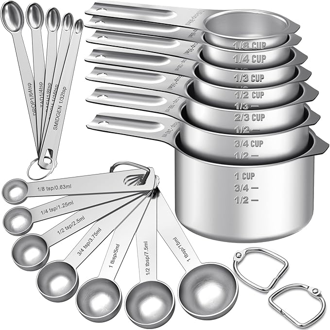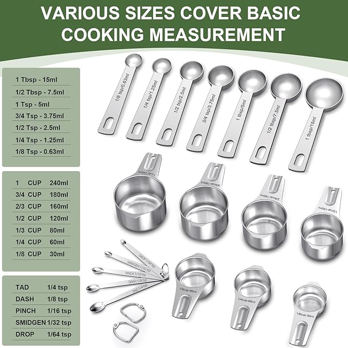 Measuring Cups and Spoons Set, 7 Stainless Steel Nesting Measuring Cups & 7 Spoons, 5 Mini Measuring Spoons & 2 Detachable Rings, Kitchen Gadgets for Cooking & Baking, Set of 21