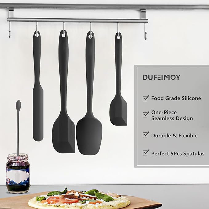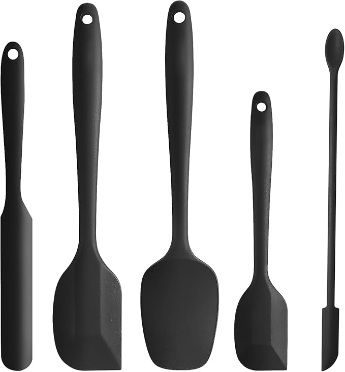 Silicone Spatula Set of 5, Rubber Spatulas Silicone Heat Resistant, Black Kitchen Spatula Set Dishwasher Safe for Nonstick Cookware Baking Cooking
