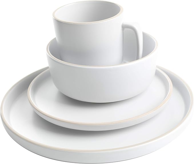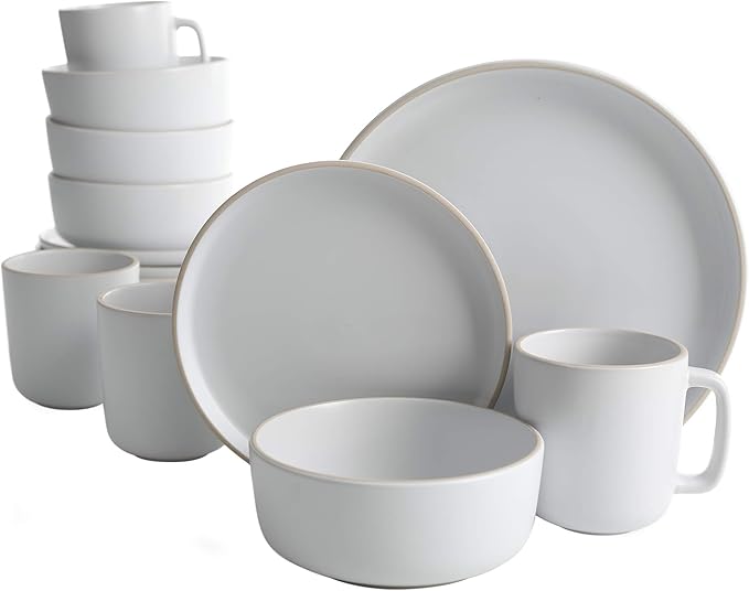 Gibson Home Zuma 16 Piece Round Kitchen Dinnerware Set, Dishes, Plates, Bowls, Mugs, Service for 4, Matte Stoneware, White