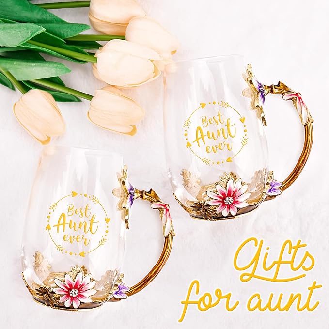 OEAGO Gifts for Aunt from Niece Nephew Tea Cup Cool Birthday Gift Enamel Flower Glass Mugs Christmas Mothers Day New Aunt Announcement Promoted