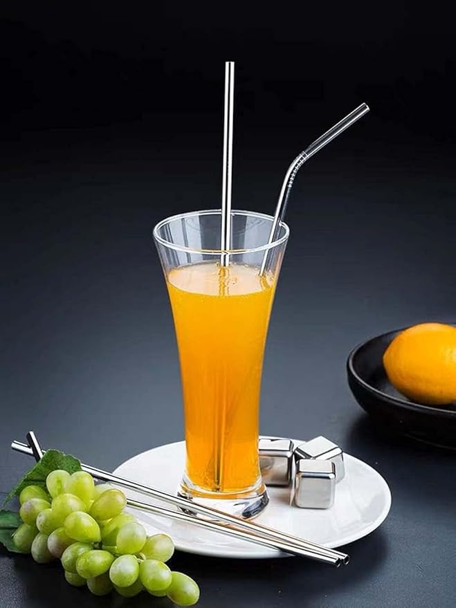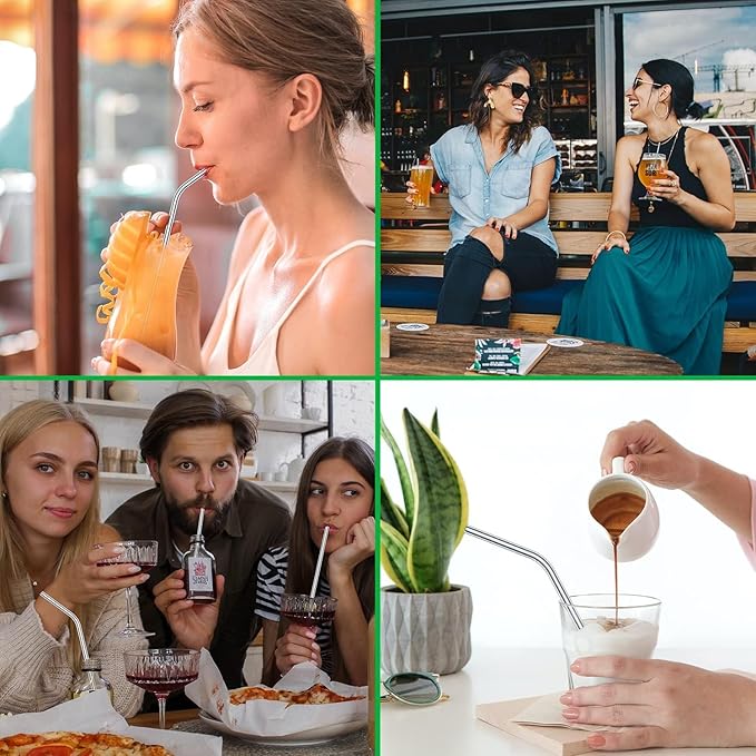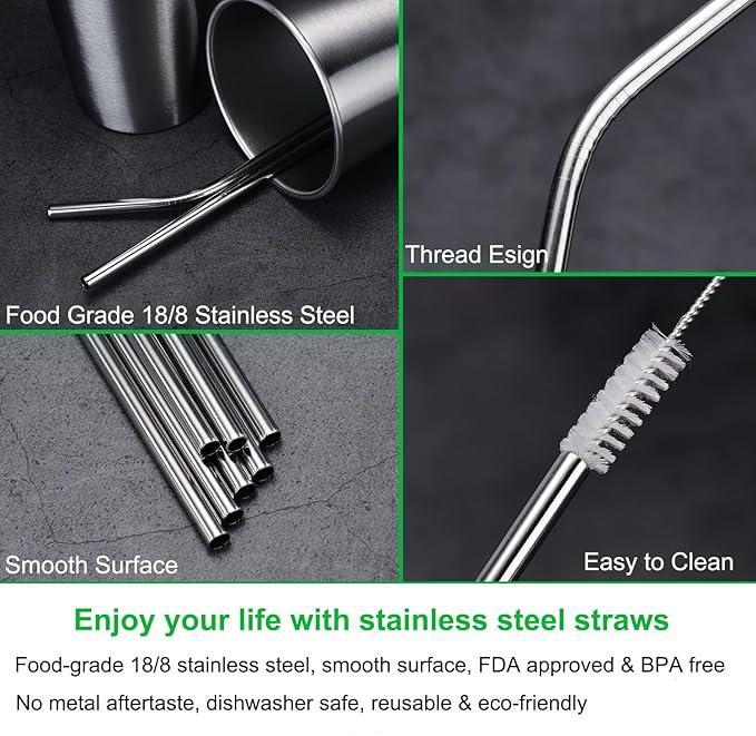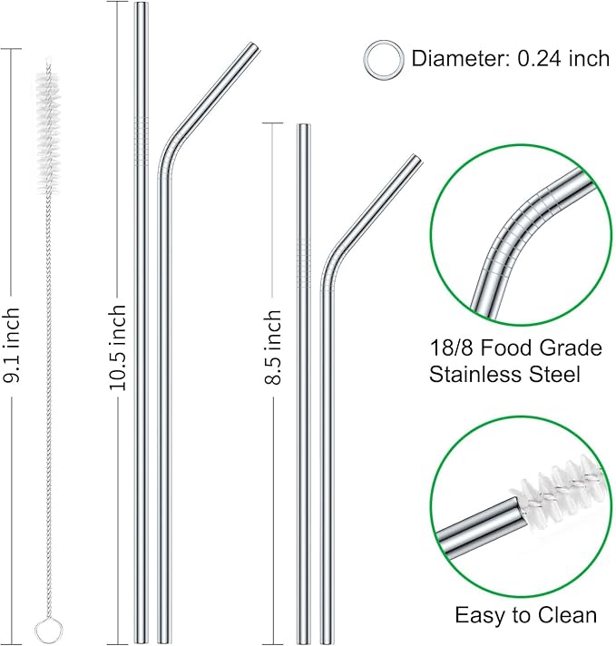 Vinaco Stainless Steel Straws Reusable, 12 Pack 8.5" & 10.5" Metal Straws 0.24" for 20 oz - 32 oz Tumblers, Long Drinking Straws with Cleaning Brush for Coffee, Juice, Cocktail and Hot Drinks
