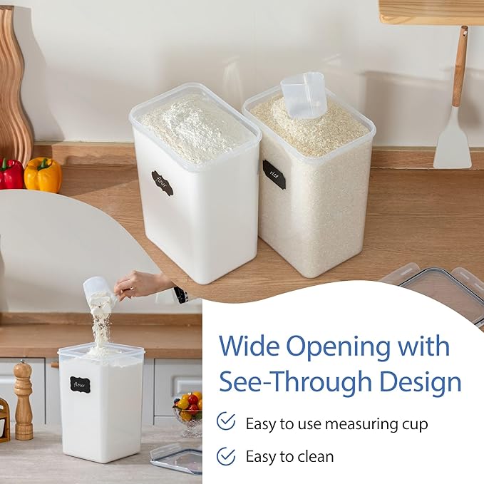 Chef's Path Airtight Food Storage Containers with Measuring Cups, Set of 2, 9.5L, 320Oz, Spacious, Leakproof Design Pantry Canisters for Flour, Sugar, and Bulk Food Storage - Transparent