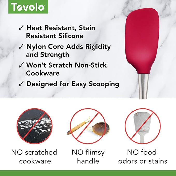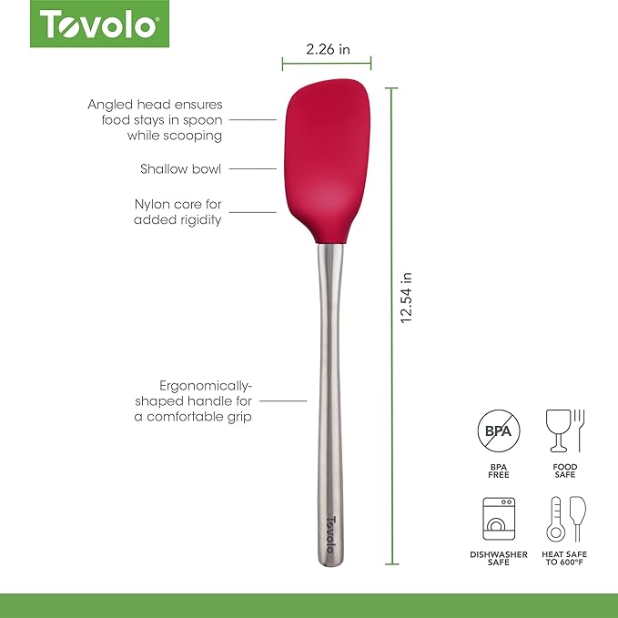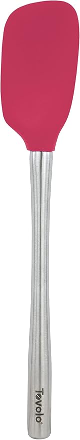 Tovolo Spoon Spatula Spoonula with Stainless Steel Handle Ergonomic Grip Viva Magenta, Silicone Scoopula Kitchen Utensil Non Scratch Easy Clean Dishwasher Safe Heat Resistant Flex Core Scoop Spatula