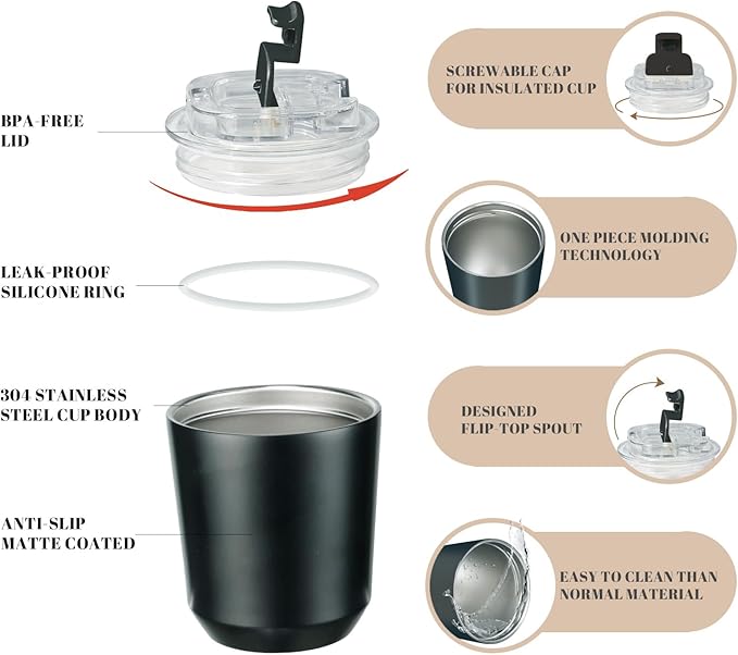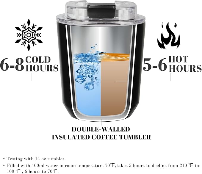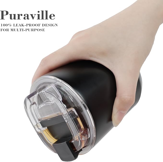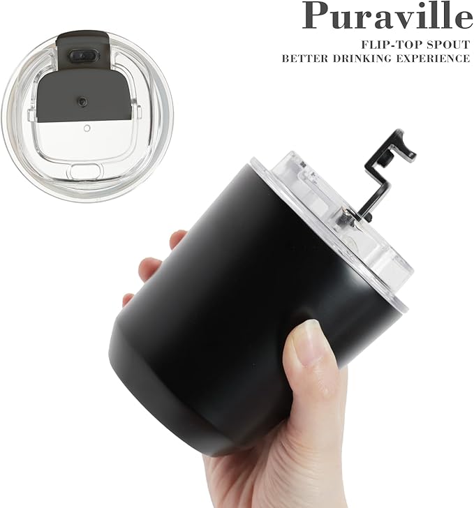 Puraville Insulated Tumblers with Lid, 10 oz Travel Coffee Mug Stainless Steel Vacuum Cup, Leak Proof Reusable Double Walled Coffee Tumbler for Iced and Hot Drinks, Black