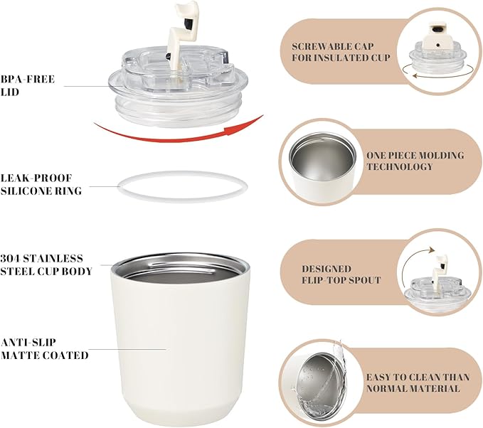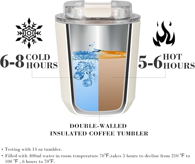 Puraville Insulated Tumblers with Lid, 10 oz Travel Coffee Mug Stainless Steel Vacuum Cup, Leak Proof Reusable Double Walled Coffee Tumbler for Iced and Hot Drinks, Cream