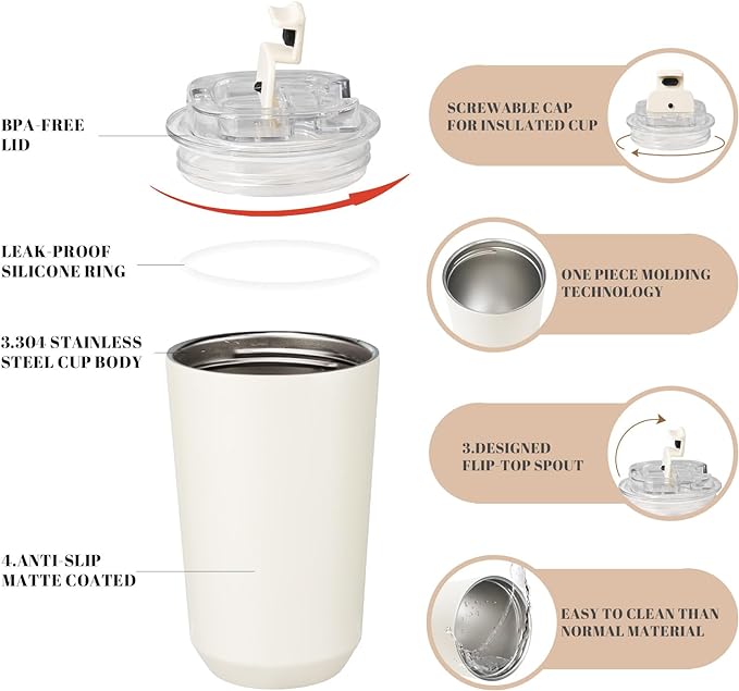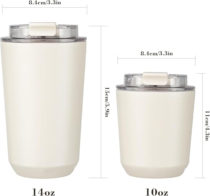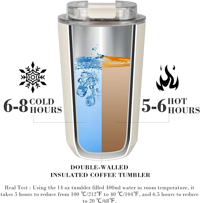 Puraville Insulated Tumblers with Lid, 14 oz Travel Coffee Mug Stainless Steel Vacuum Cup, Leak Proof Reusable Double Walled Coffee Tumbler for Iced and Hot Drinks, Cream