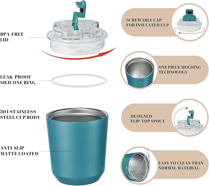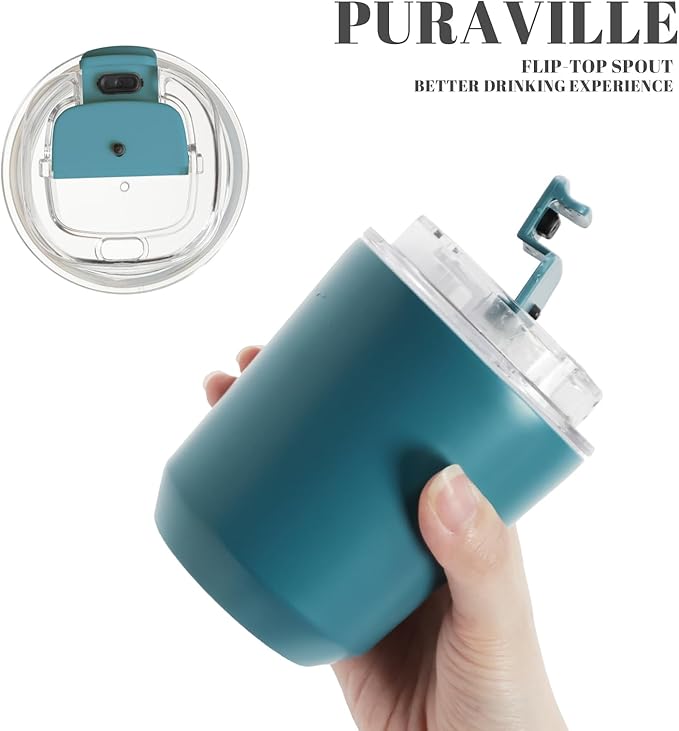 Puraville Insulated Tumblers with Lid, 10 oz Travel Coffee Mug Stainless Steel Vacuum Cup, Leak Proof Reusable Double Walled Coffee Tumbler for Iced and Hot Drinks, Peacock Blue