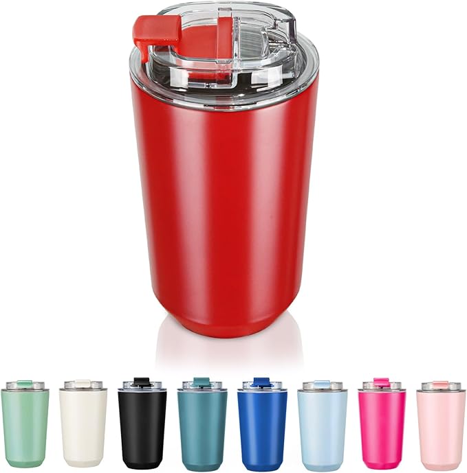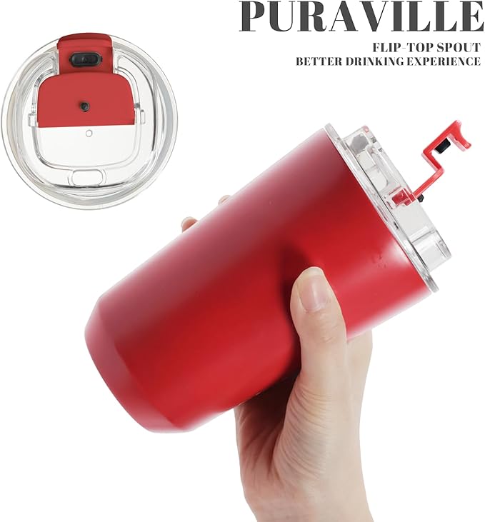 Puraville Insulated Tumblers with Lid, 14 oz Travel Coffee Mug Stainless Steel Vacuum Cup, Leak Proof Reusable Double Walled Coffee Tumbler for Iced and Hot Drinks, Red