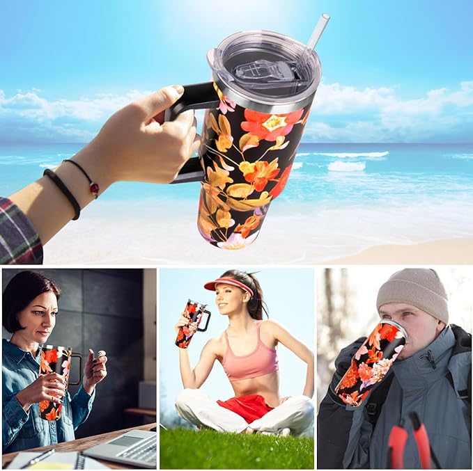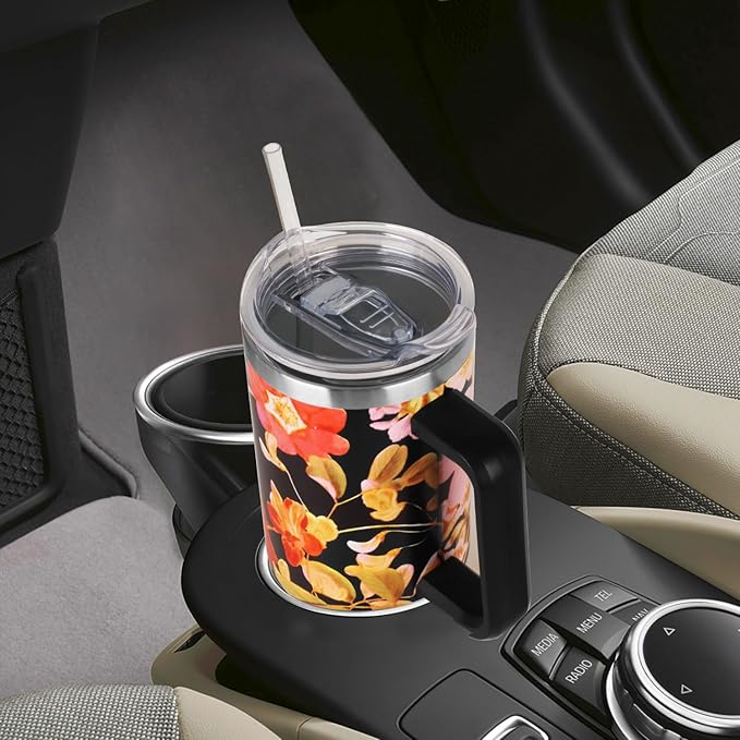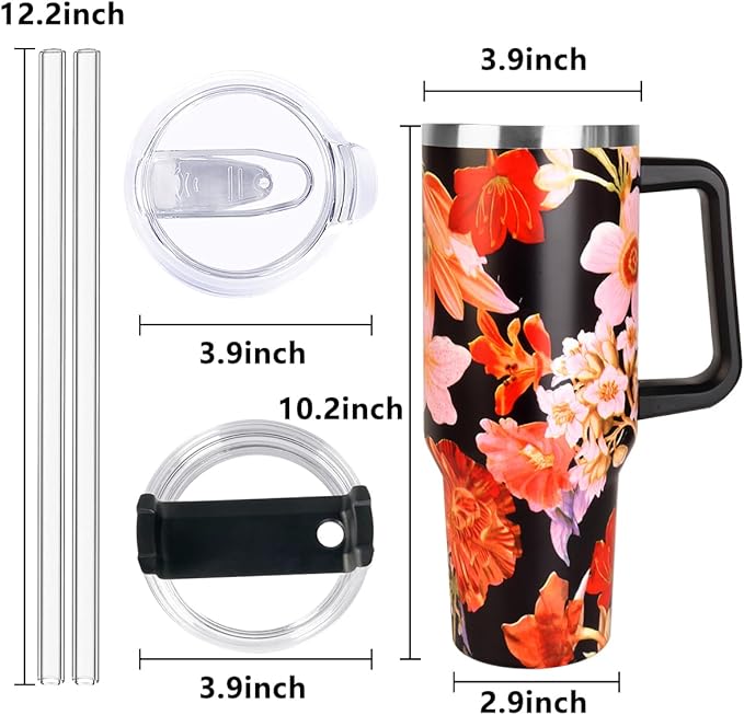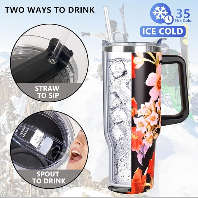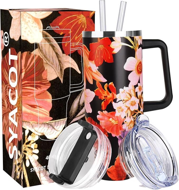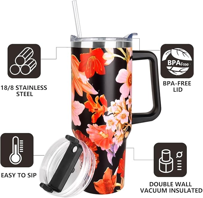 SYACOT 40 oz Tumbler with Handle and Straw Stainless Steel Insulated Tumbler Leak Proof Lid and Straw Lid Reusable Travel Mug Coffee Mug Cup Dishwasher Safe Keep Drinks Cold and Hot (Jasmine)
