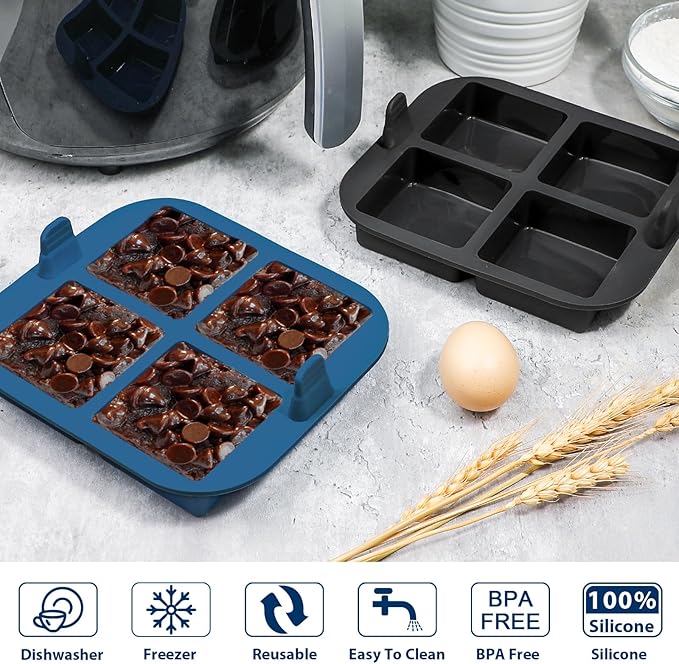 Webake Silicone Air Fryer Brownie Pan for Baking, Nonstick 2.6" Square Silicone Mold for S'mores, Cake Puck, Muffin, 4-Cavity Set of 2