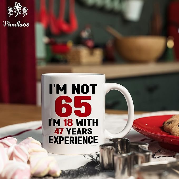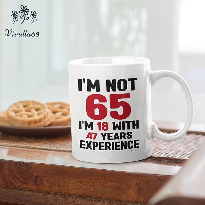 Vivulla68 65th Birthday Mug 11oz - 65th Birthday Gifts for Women Men - 65 Year Old Birthday Gifts Ideas for Him, Her, Woman, Man - Happy Funny Gift Present Coffee Cup - Turning Age 65