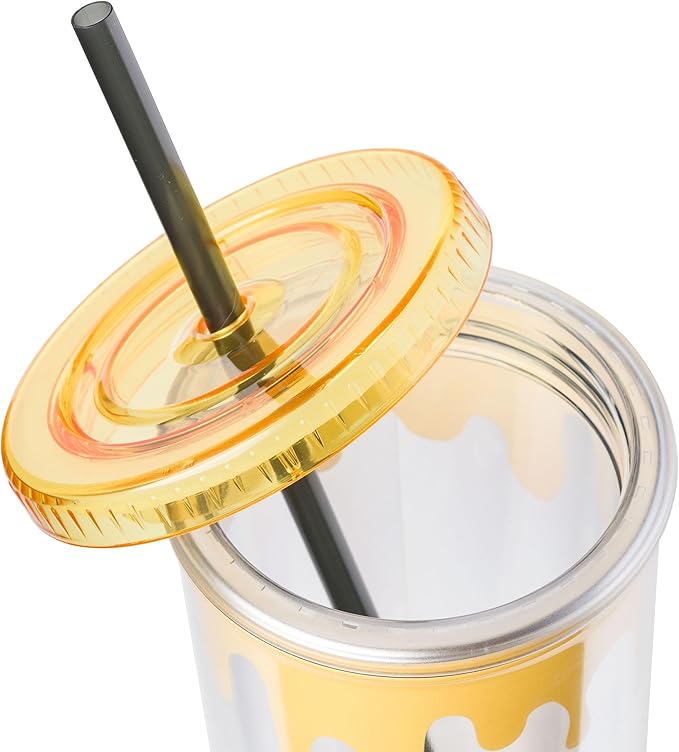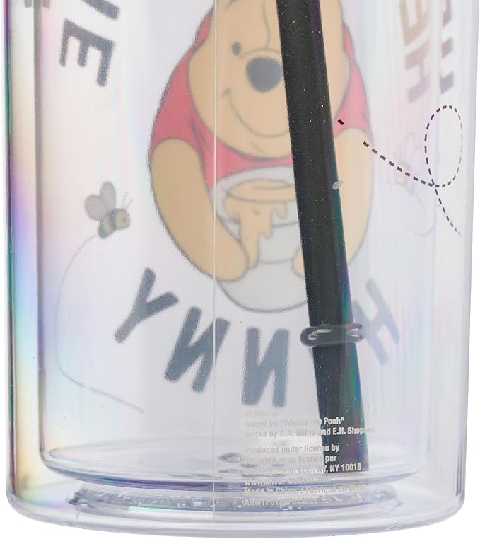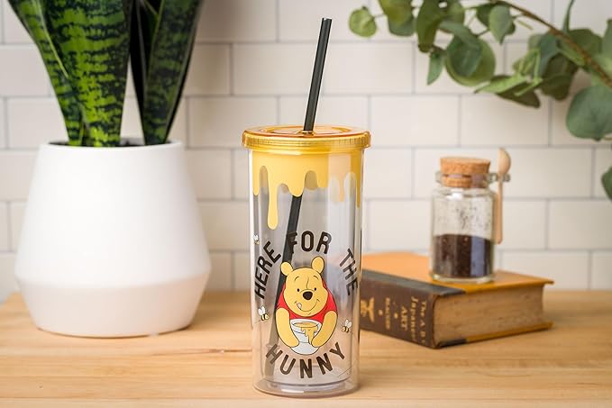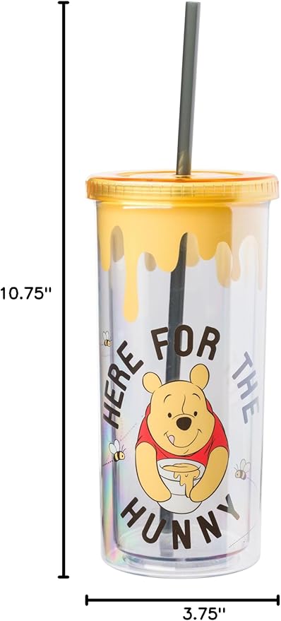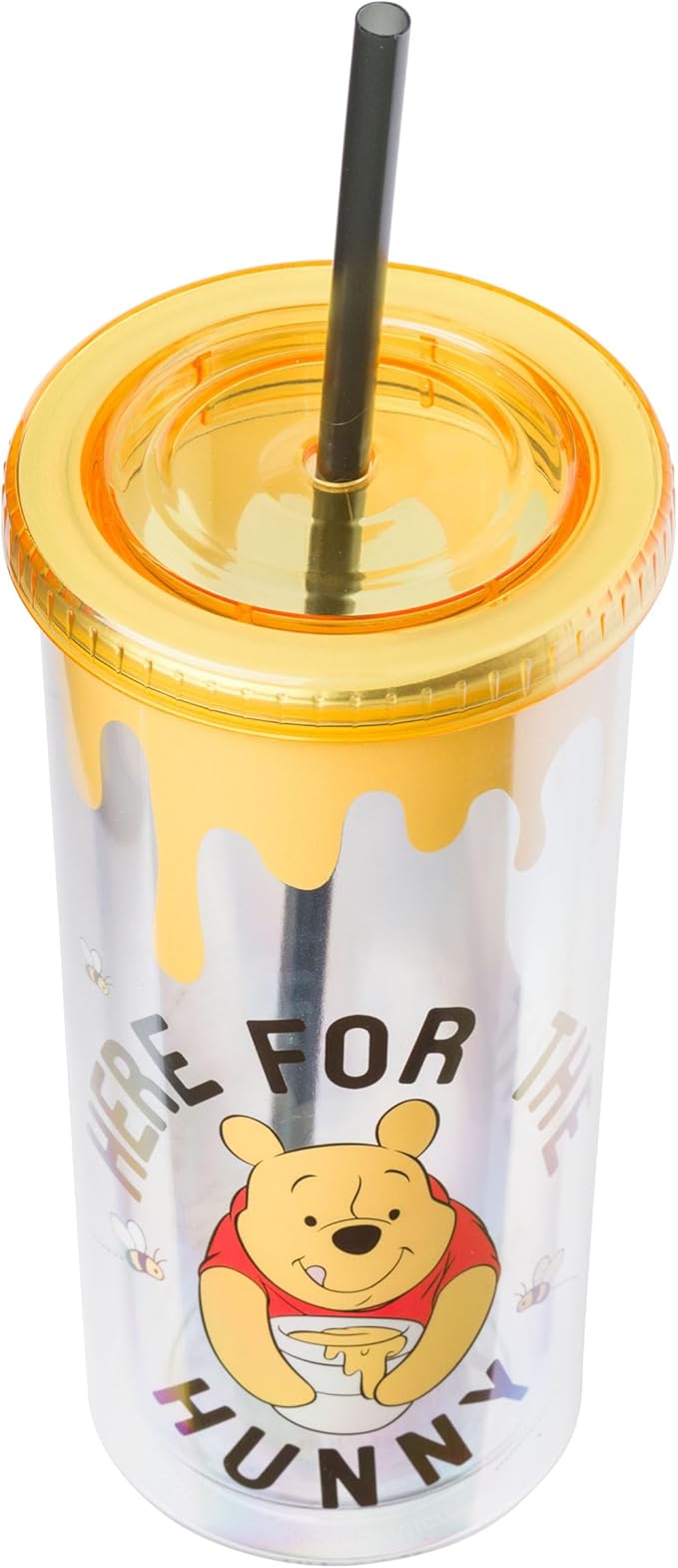 Silver Buffalo Winnie the Pooh Here for Hunny Plastic Tall Cold Cup with Lid and Straw, 20 Ounces