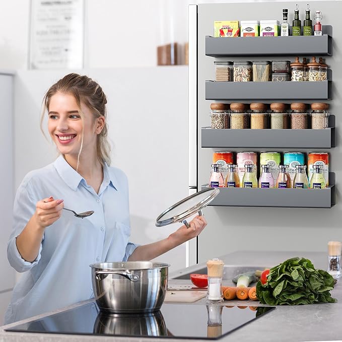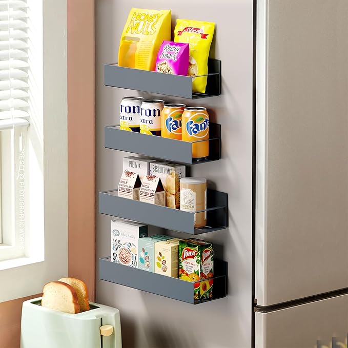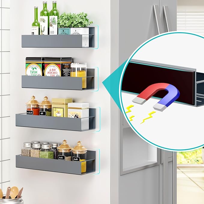 4 Pack Moveable Fridge Magnetic Spice Racks,Metal Grey