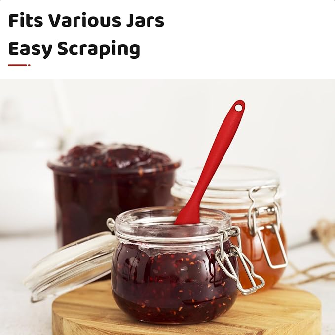 Silicone Jar Scraper with Long Handle, Jam Spreader for Peanut Butter, Kitchen Spatula for Baking and Cake Icing, Small Silicone Spatula, 2Pcs