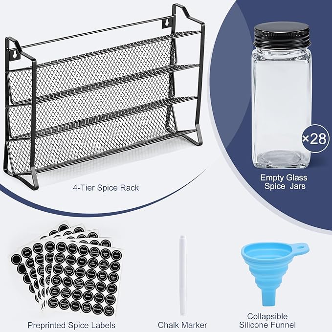 About This Organized and Accessible: The spice rack's 4-tier design and quick-find labels make it easy to view and access... Read more