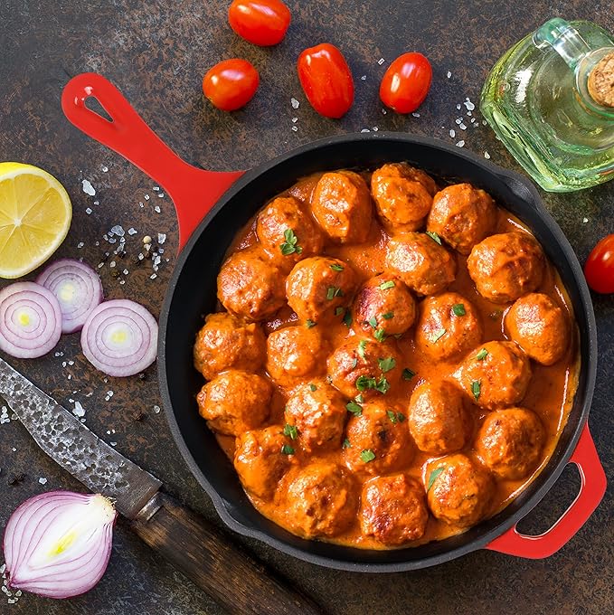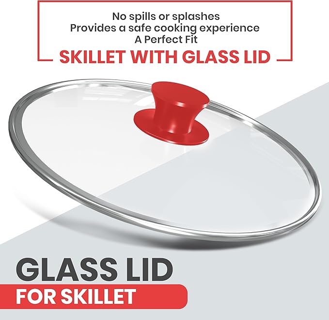 Utopia Kitchen Saute Frying Pan 12 Inch, Cast Iron Chefs Pan, Pre Seasoned Cast iron Skillet With Lid, Safe Grill Cookware for Indoor & Outdoor Use, Red