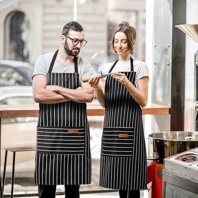 • Adjustable Shoulder Strap: 36"x 27" size Large cooking aprons cover from chest to knee. Our bib apron can adjust the neckline and waistband to the desired size for the most comfortable wearing