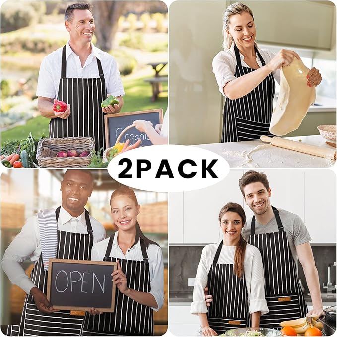 2 Pack Adjustable Bib Apron with 2 Pockets Chef Cooking Kitchen Restaurant Aprons for Women Men
