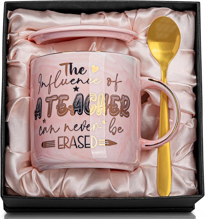 Teacher Appreciation Gifts for Women, Christmas, Birthday, Retirement, Back to School, Graduation, End of Year Gifts - The Influence of A Teacher Can Never Be Erased, 14oz Golden Pattern Marble Mug