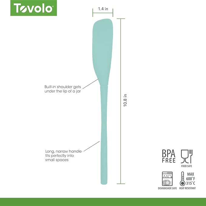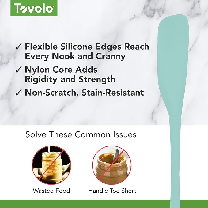 Tovolo Flex-Core Silicone Spatula Jar Scraper - Long-Handled Rubber Spatula with Angled Head for Scooping & Scraping - Heat-Resistant Spatulas for Kitchen Use, Dishwasher Safe & BPA-Free