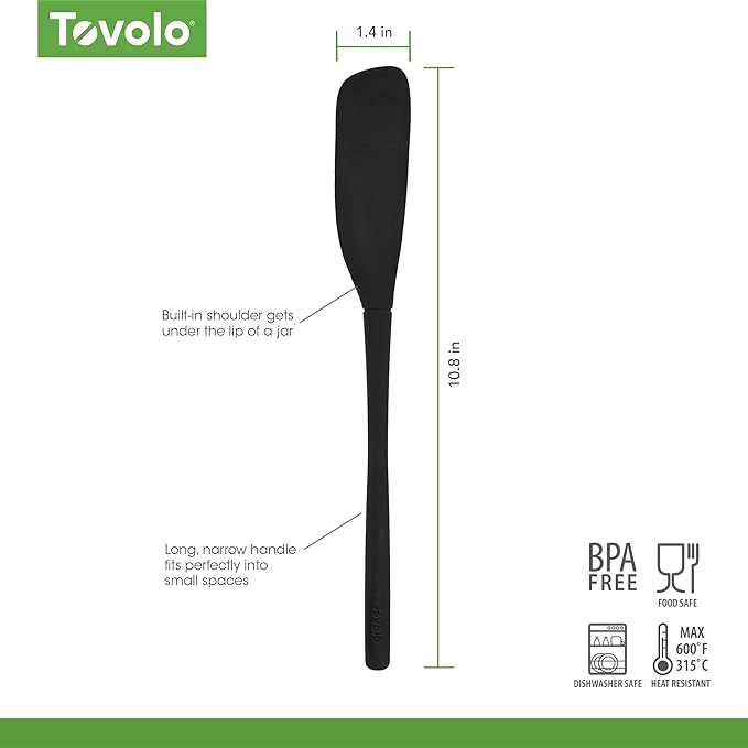 • Built In Shoulder Design: Built-in shoulder easily scrapes under the lip of a jar to ensure nothing goes to waste.
