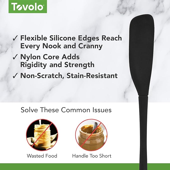 Tovolo Flex-Core Silicone Spatula Jar Scraper - Long-Handled Rubber Spatula with Angled Head for Scooping & Scraping - Heat-Resistant Spatulas for Kitchen Use, Dishwasher Safe & BPA-Free