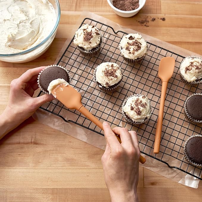 Tovolo Flex-Core All-Silicone Mini Spatula & Spoonula, Kitchen Utensil Set of 2, Heat-Resistant & BPA-Free Silicone Spatula & Spoonula, Safe for Non-Stick Cookware and Dishwasher, Apricot