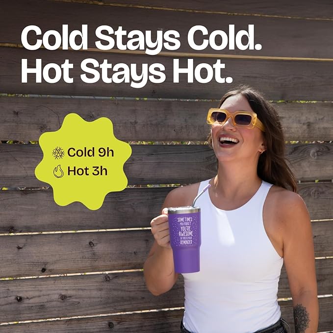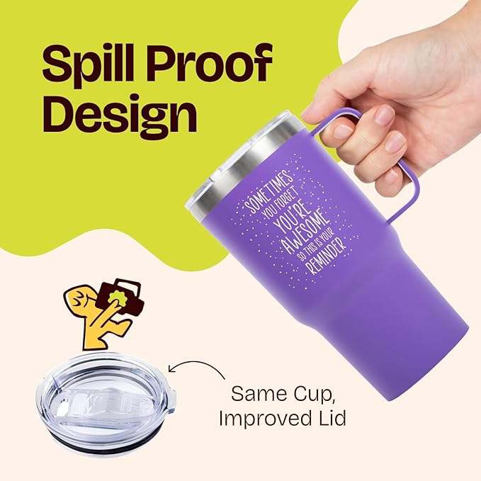 KLUBI Christmas Gifts for Women Coworkers - Sometimes You Forget Your Awesome Gift 20 Ounce Purple Tumbler With Handle - Xmas Gifts for Women Friend Funny You Are Awesome Cup