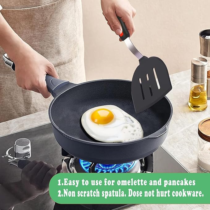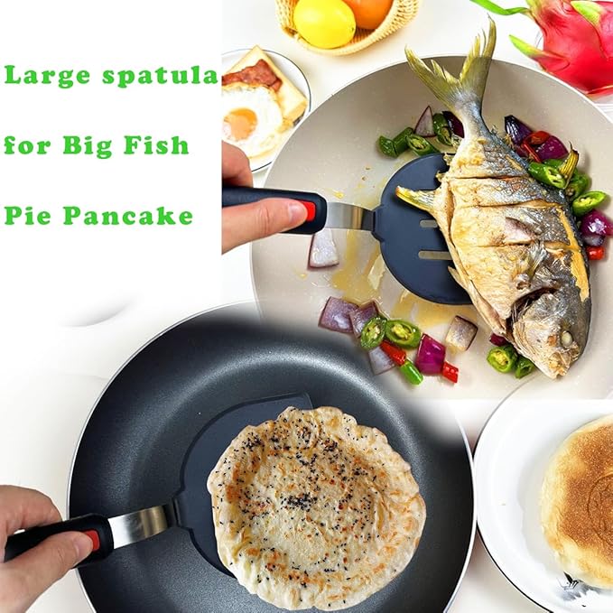 Tenta tenta kitchen Silicone Turner Pancake Slotted Spatula for Cooking - Nonstick Cookware Safe 600°F Flexible & Thin Cooking Flipper for Eggs - Reinforced Stainless Steel Core - BPA Free
