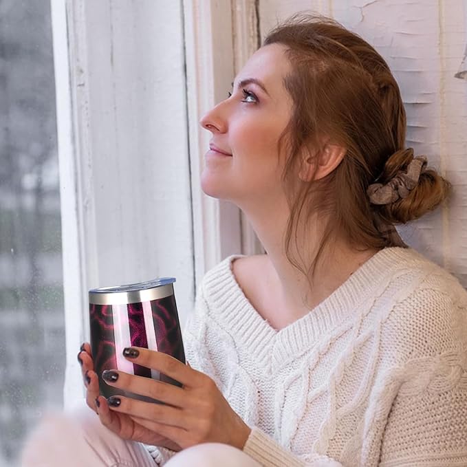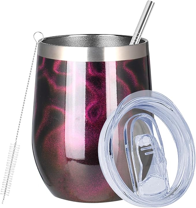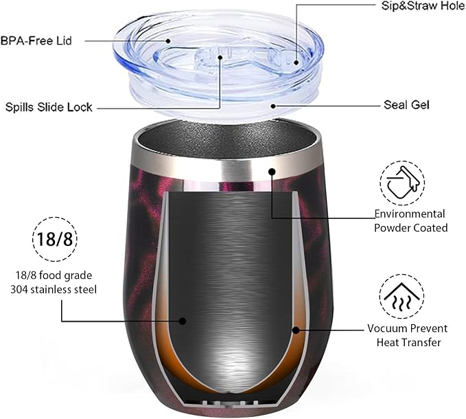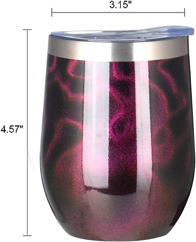 MEZMUT 12 Oz Insulated Wine Tumbler with Lid Double Wall Vacuum Stainless Steel Wine Glass Coffee Mug Insulated Tumbler Cup for Champaign, Cocktail, Beer (Purple Gold, 1 Pack)