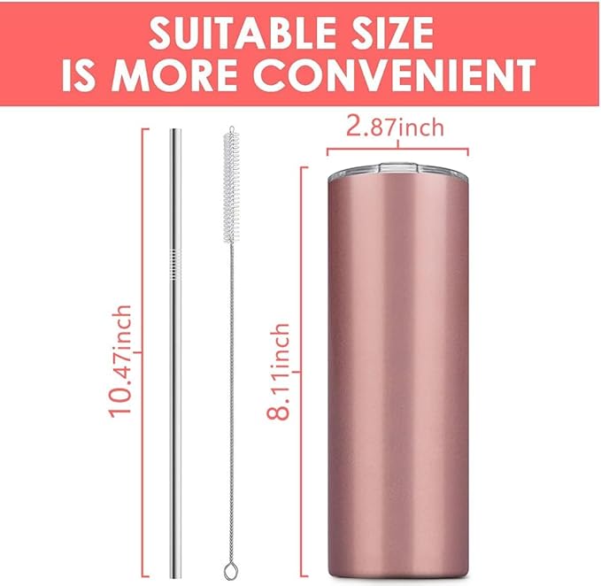 Tumbler with Straw and Lid, Insulated Coffee Travel Mug Tumbler 20 oz Stainless Steel Double Wall Reusable for Iced Drink, Women and Men Gift, Home Office, Outdoor