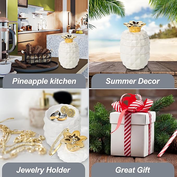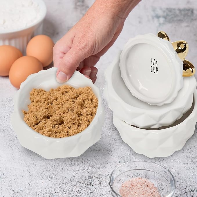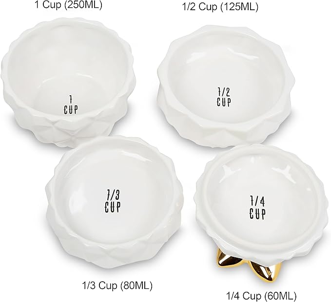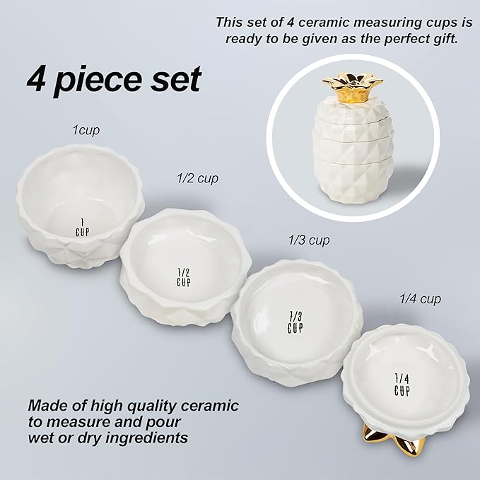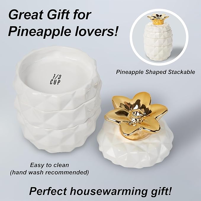 Set of 4 Decorative Pineapple Shaped Stackable Ceramic Kitchen Measuring Cups in 4 Assorted Sizes