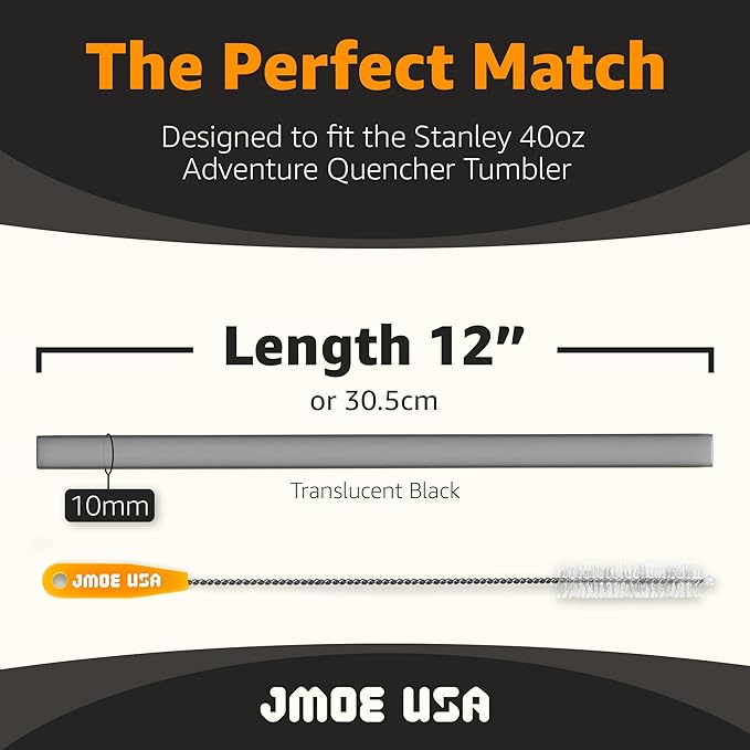 Jmoe USA 12" Replacement Straws for Stanley 40oz & 30oz Tumblers | Fits Reduce 50 oz & 40 oz Cold1 Tumblers | 6-Pack of Reusable Plastic Straws With Cleaning Brush | Food Grade & BPA Free (Black)