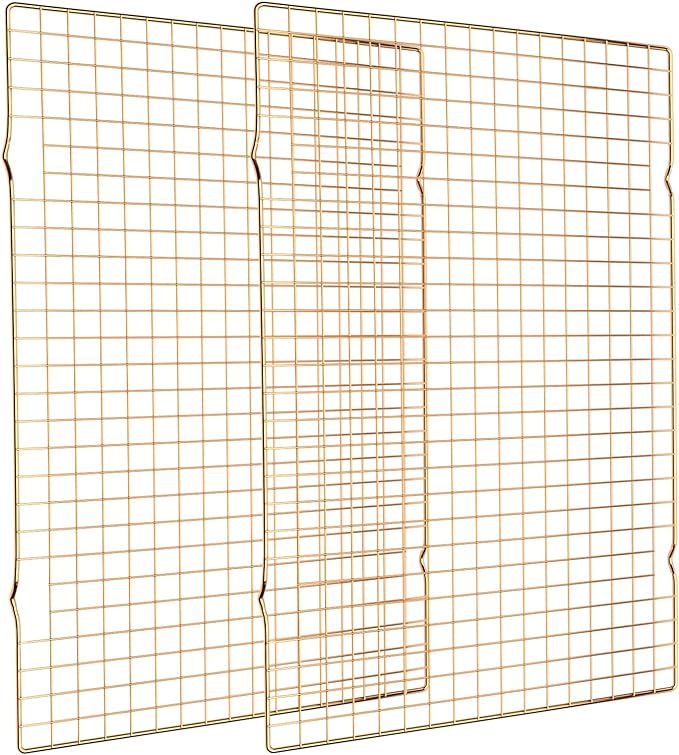 Cooling Rack for Baking, 2-Pack 16x10 Inches Baking Rack, Thick Wire Cookie Rack for Cooking, Roasting, Grilling, Drying, Oven Safe, Fits Half Sheet Pan, Gold