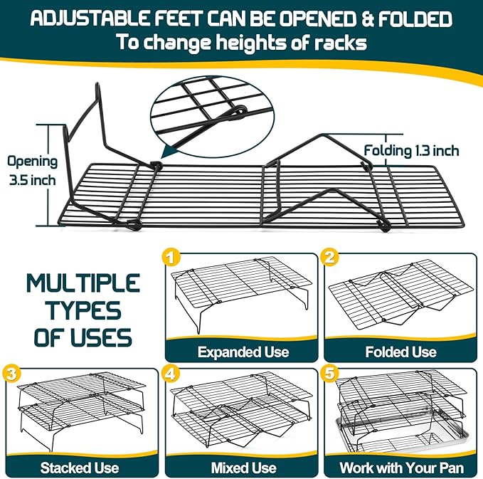 P&P CHEF Cooling Rack, 5-Tier Stainless Steel Stackable Baking Cooking Racks for Cooling Roasting Grilling, Collapsible & Heavy Duty, Oven Safe & Easy Clean, 15" x 10", Black