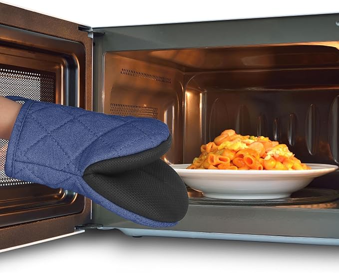 1 Pair Short Oven Mitts, Heat Resistant Silicone Kitchen Mini Oven Mitts for 500 Degrees, Non-Slip Grip Surfaces and Hanging Loop Gloves, Baking Grilling Barbecue Microwave Machine Washable