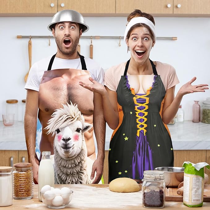 Funny Men Cooking Grilling Aprons Belly BBQ Funny Gag Gifts for Christmas, White Elephant Gift Exchange (Goat, One Size)