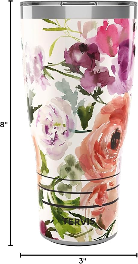 Tervis Traveler Kelly Ventura Floral Collection Heather Rose Triple Walled Insulated Tumbler Travel Cup Keeps Drinks Cold & Hot, 30oz - Stainless Steel, Heather Rose