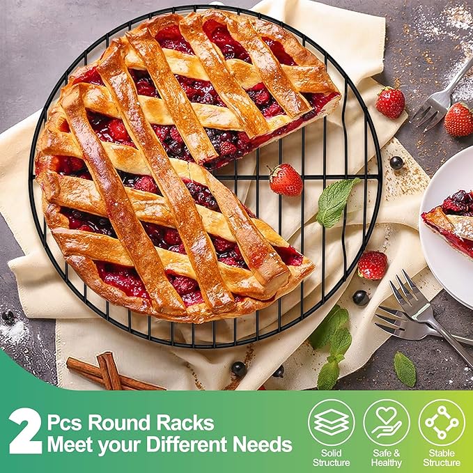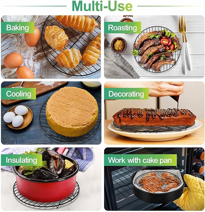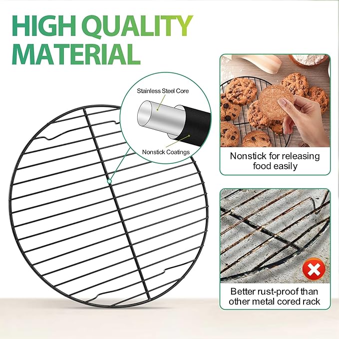 P&P CHEF Round Cooling Rack Set, Round Wire Racks for Cooking Baking, Fit Air Fryer & Oven, Stainless Steel Core with Nonstick Coatings, Black, 2 PCS - 9 Inch