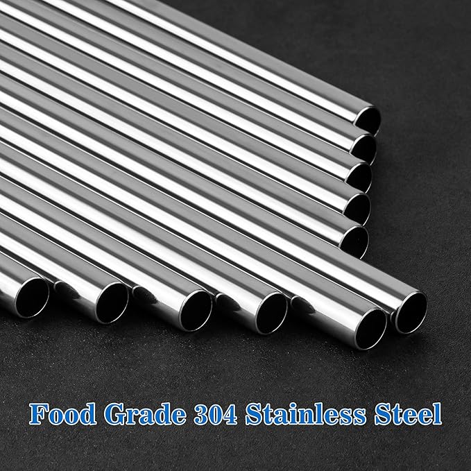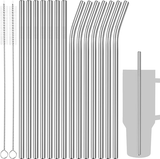 Tomorotec 40oz Straws, 14PCS Stainless Steel Replacement Straws for Stanley 40oz Adventure Quencher Travel Tumblers with Cleaning Brushes 2PCS, Food-Grade, Dishwasher Safe for Smoothies (Silver)