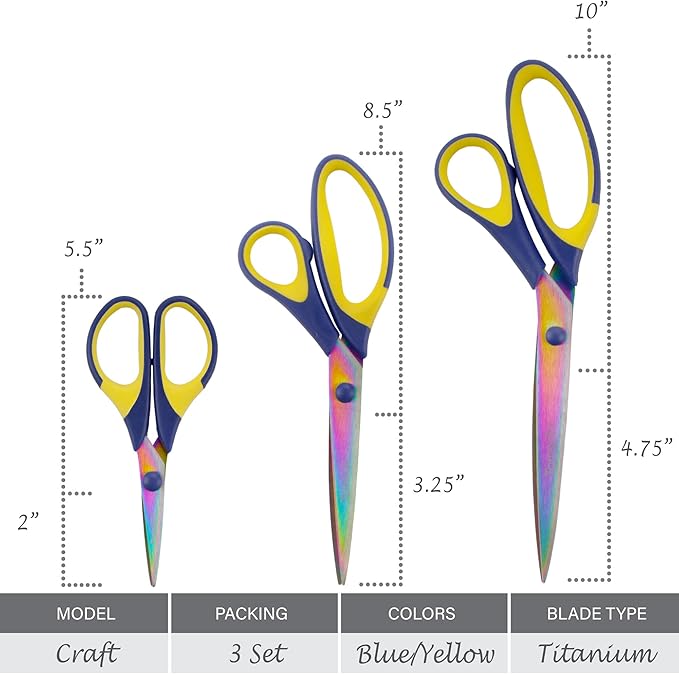 About This ✂ MULTIPLE STYLES The only scissor set you will ever need. Our JubileeYarn Titanium Softgrip Scissors 3 Sets... Read more