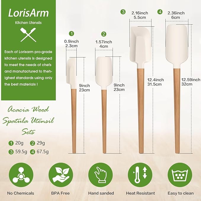 Wooden Handle Spatula Set, 12" & 9" Rubber Spatula Silicone Spatulas for Baking Cooking and Mixing.